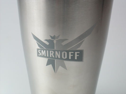 Rasterdruck im „Laser-Effekt“ auf einen Becher des führenden deutschen Anbieters von Wein- und Bar-Accessoires