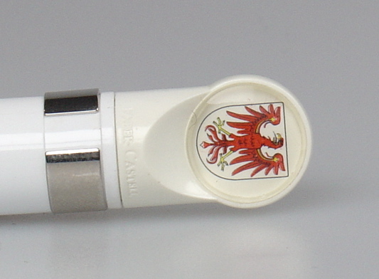 Mehrfarbdruck in feinster Struktur auf Schreibgeräte. Hier: Motiv unter Schutzlupe.